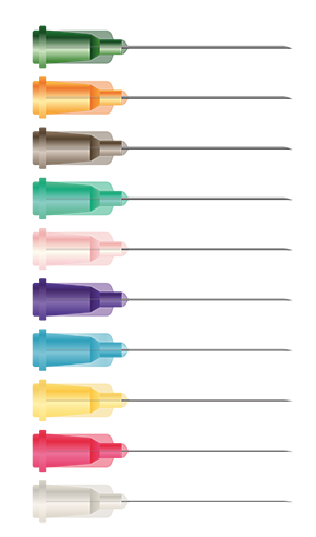 Biscomedic needles provide the best cutting angle for exceptional needle sharpness and have a silicone lubricating layer on the outside. The sharp edge allows for easier penetration into the skin and reduces trauma. The silicone coating on the needle, on the other hand, provides good gliding qualities and enables for a smooth entry.